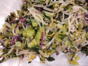 食缶を開けるときれいなきくの花が入ったおひたしです‼