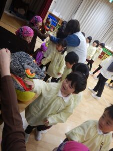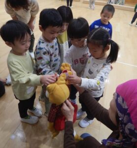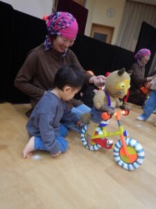 お話の後は劇に出てきた人形を触らせてもらいました。