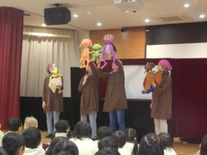 ぬいぐるみを使って人形劇ごっこをしたり、余韻も楽しんでいた子どもたちです。