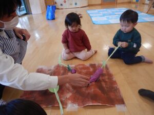 「うんとこしょ~」と力を合わせたり♪やきいもグーチーパーを歌ったりして遊びました。