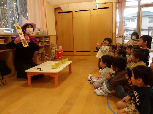 ♪ハロウィンおばけパーティーの手遊びを楽しんだ後は、10月生まれの友だちが呼ばれ、お祝いをしました!
