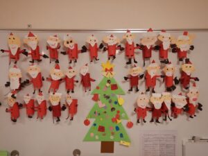 「みんなのサンタさんのところ!」とクリスマス制作でみんなが作ったサンタさんを指さして言っていました。