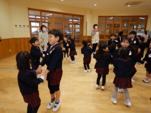 手を繋いだり、タッチをしたり…「いっしょにしよう!」「ありがとう!」などのあたたかい言葉も聞こえ、微笑ましいですね。
