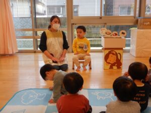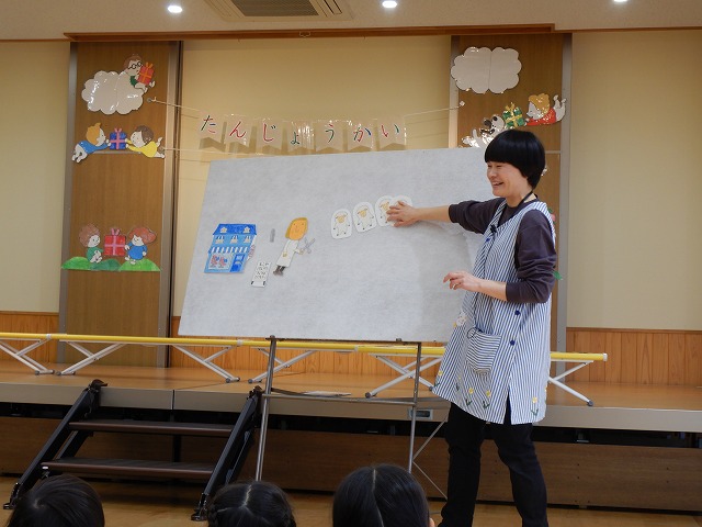 みんなで「コンコンコンコン クシャン!」と歌い、誕生会が始まります。