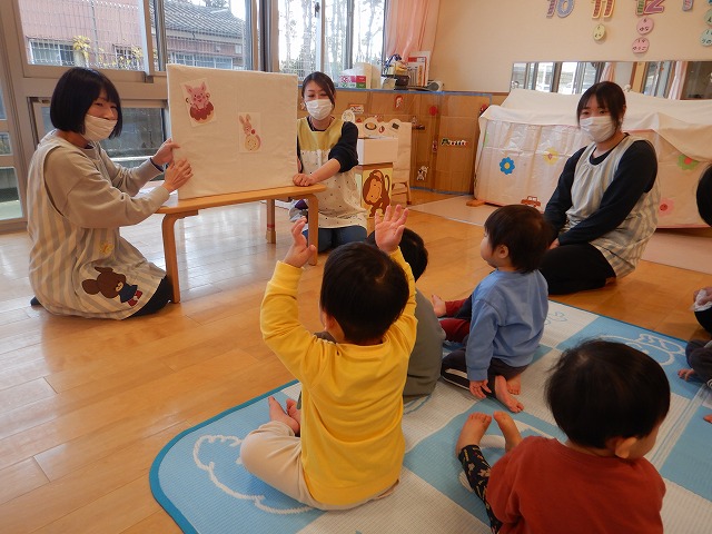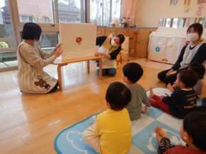 保育者からは『スイーツかくれんぼ』のパネルシアター