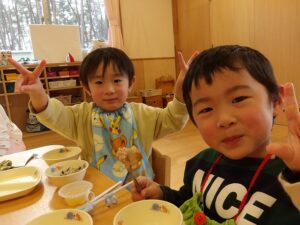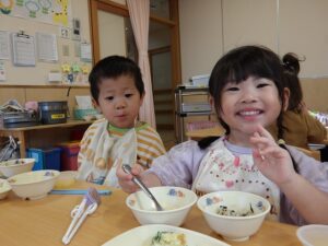 それぞれの保育室で“おめでとう” “おいしいね” とお祝いをしました☆彡