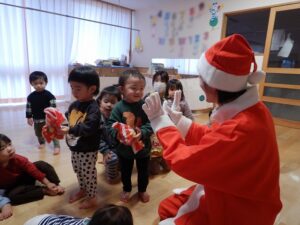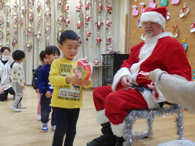幼稚園にもサンタさんが来てくれました。