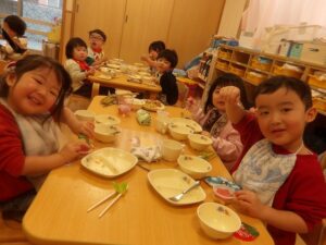 「サンタさんいたね!」と思い出しながら食べたり「サンタさんのゼリーだ!」と喜んだり、嬉しそうな子どもたちでした☆