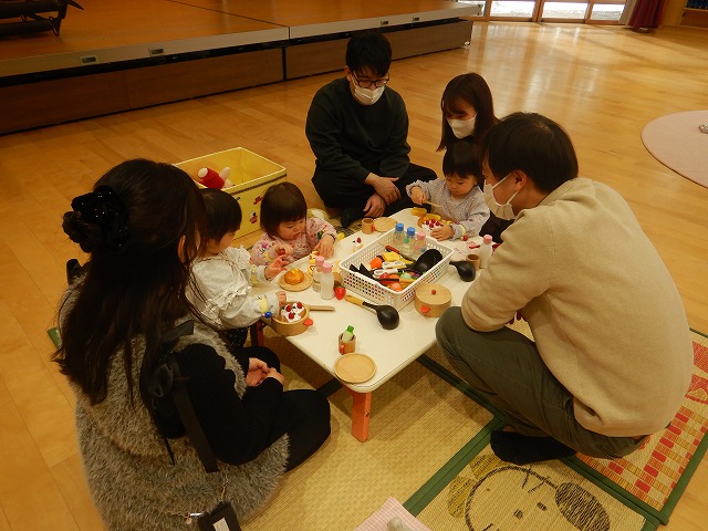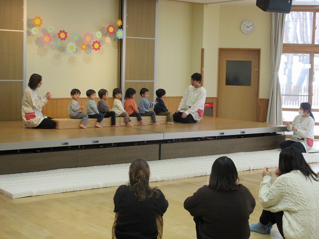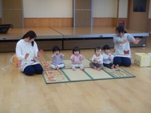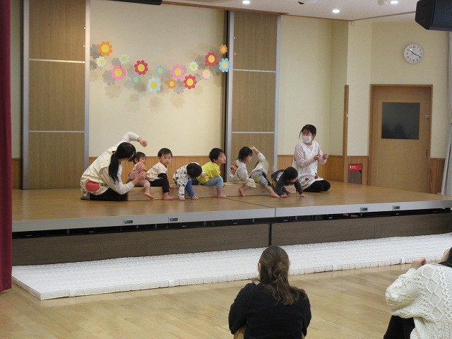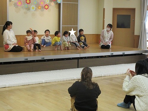 1月21日(0歳児)、23日(1歳児)に、参加参観日・発表会ごっこがありました。