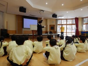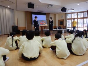 道路や横断歩道の渡り方を指導員さんからDVDやイラストを通して改めて教えてもらいました。