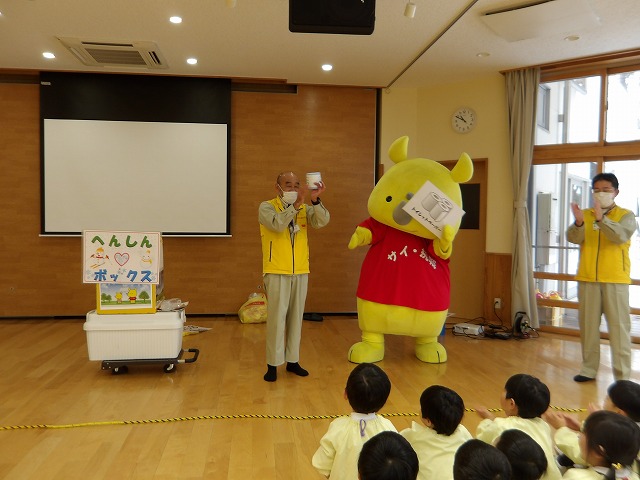 クイズの後は、サイチョくんも来てくれ、“へんしんボックス”でごみを変身させていきます!
