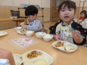 「あ、お豆だ!」と、豆まきのことを思い出しながら味わっていた子どもたちです。