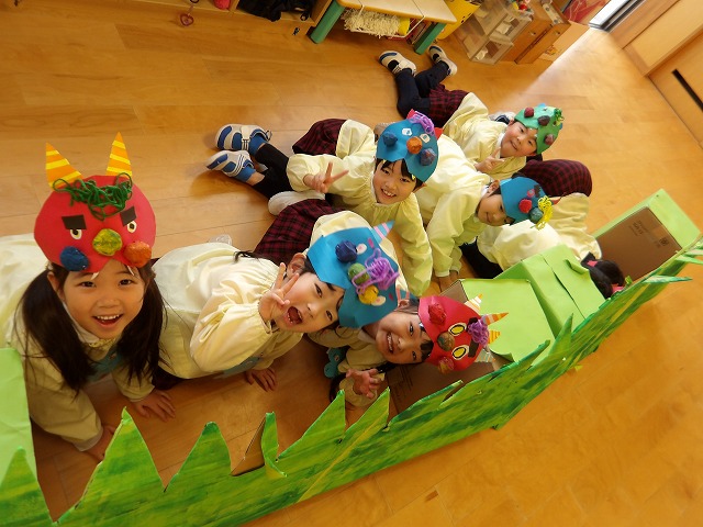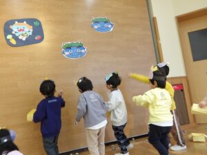 わかば組さんでは豆まきをしたり、「おにのパンツ」を踊ったりしました♪