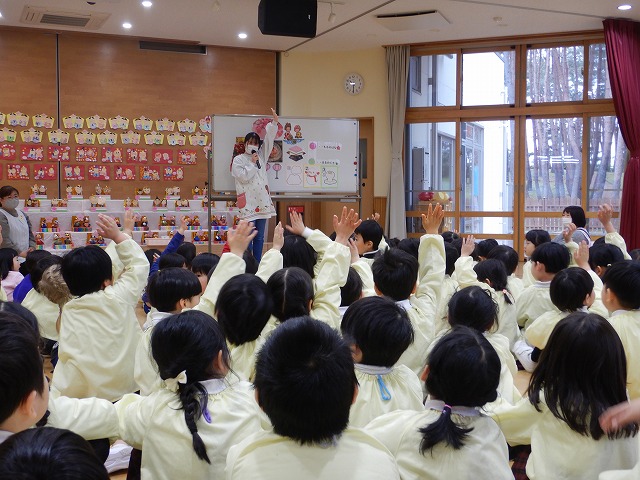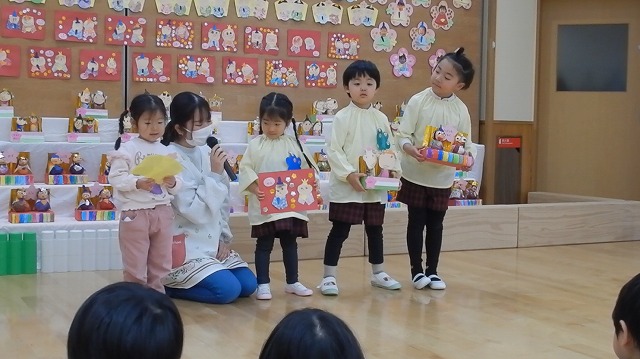 みんなが作ったひな人形制作をクラスを代表して話してもらいました。