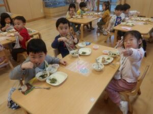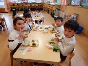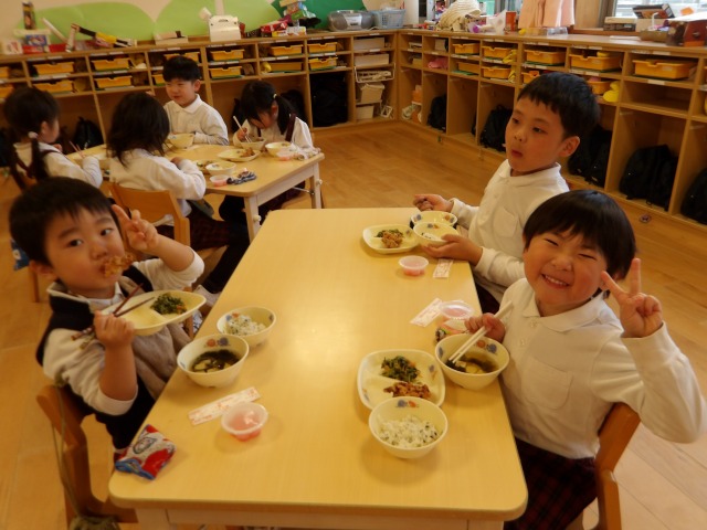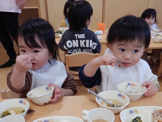 わかば組さん・きのめ組さん・つぼみ組さんも、給食美味しいね(*^▽^*)