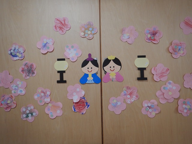 最後はお雛様と一緒に飾り、保育室がとっても華やかになりました🌸