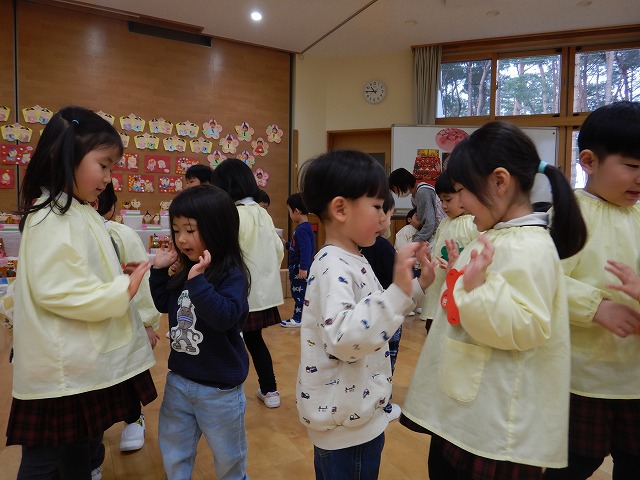 2人組を作って『ひなまつりチャチャチャ♪』の触れ合い遊びをしました♪